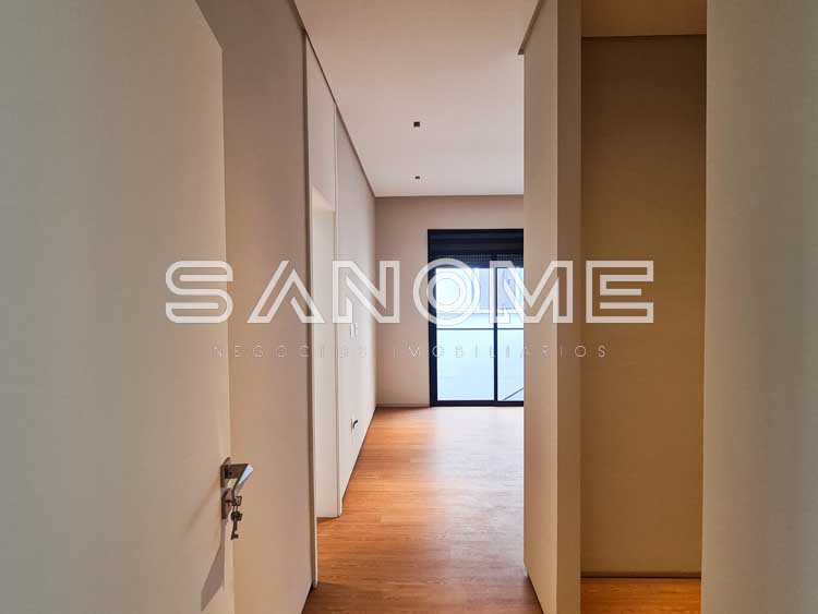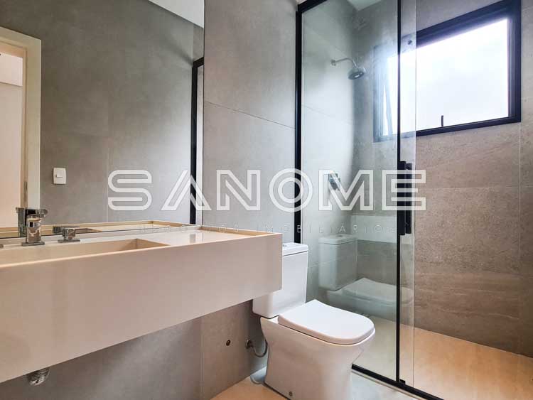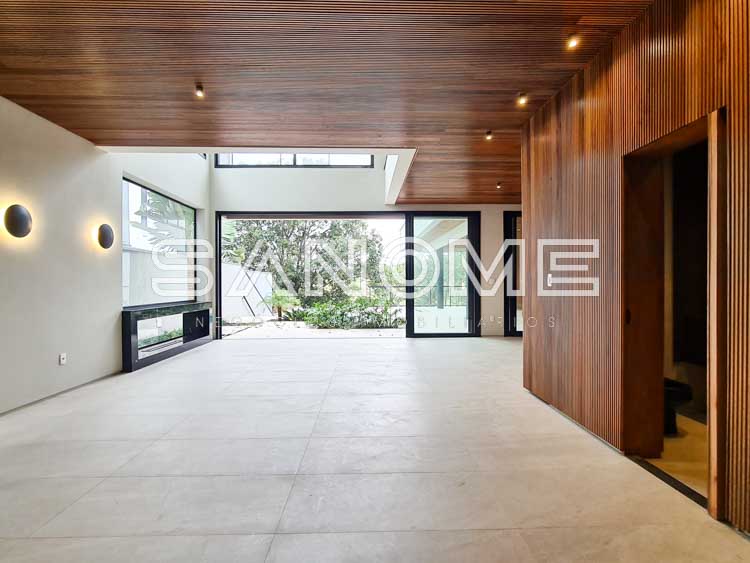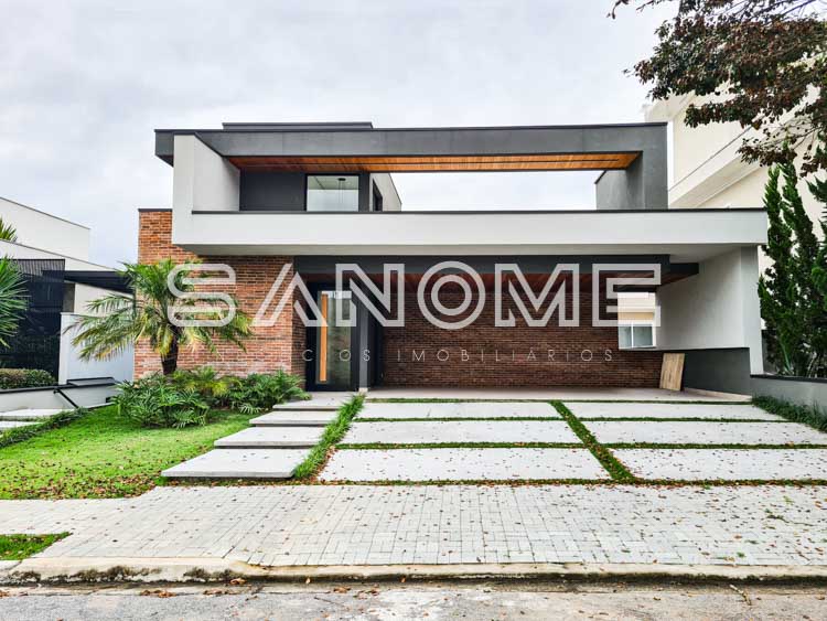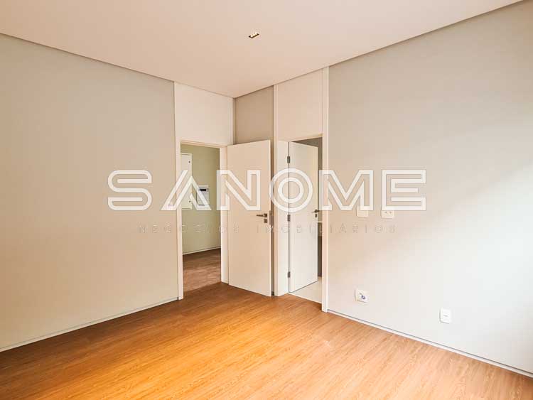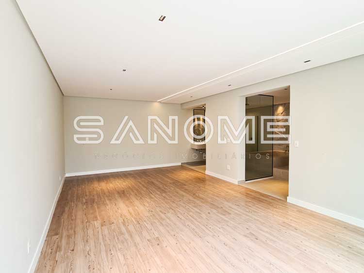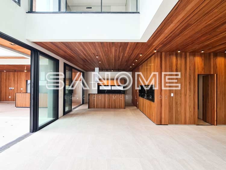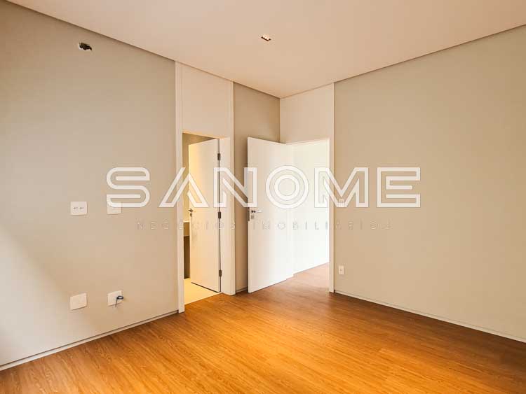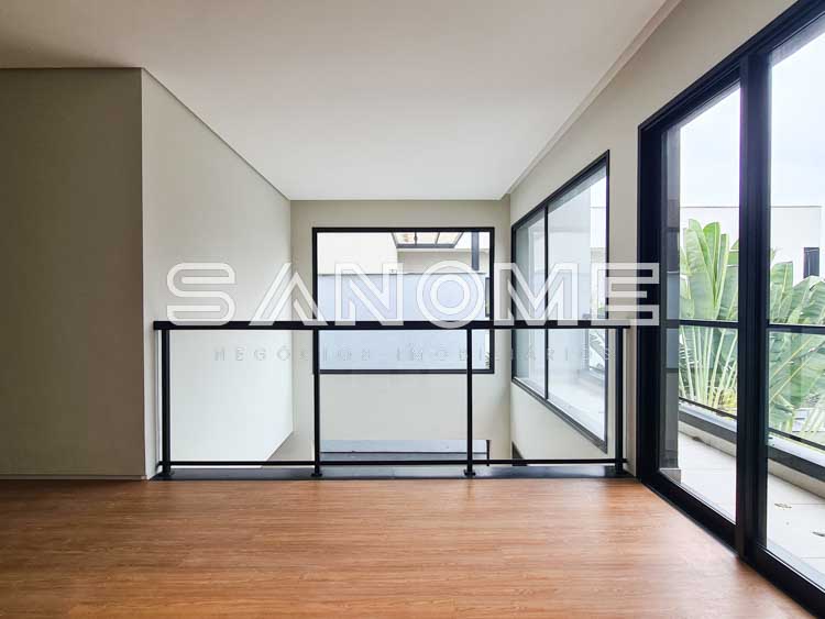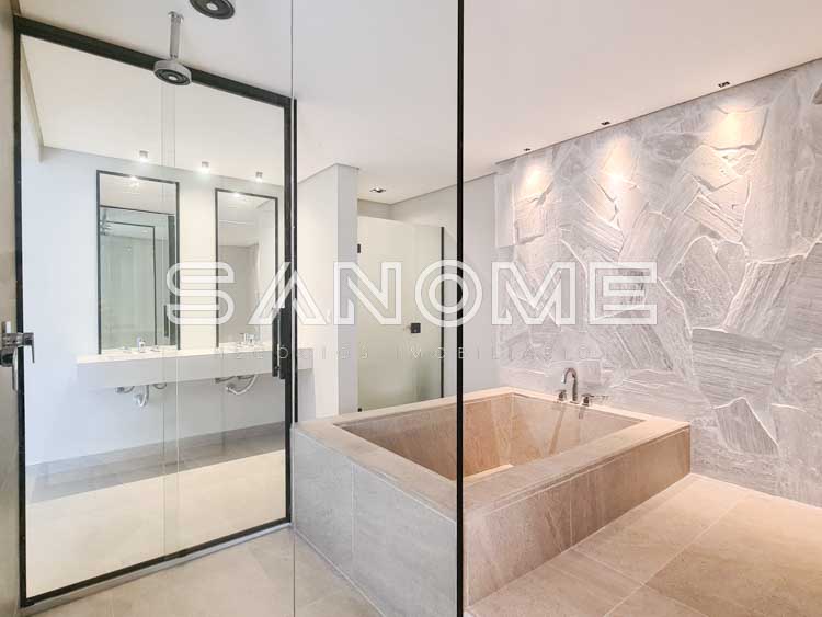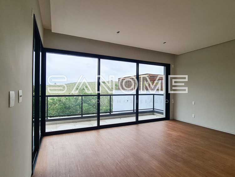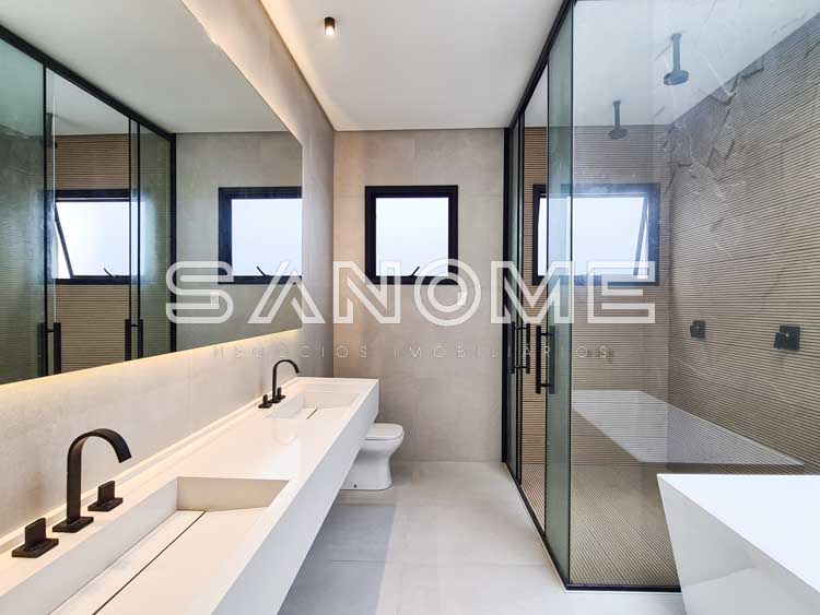 Piso superior: Sala íntima + 4 suítes (suíte master com closet e banheira).