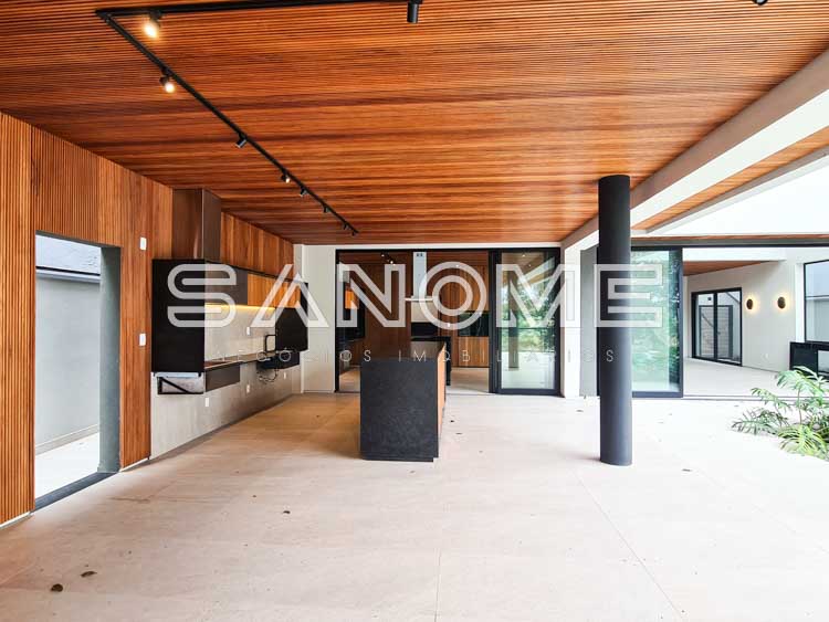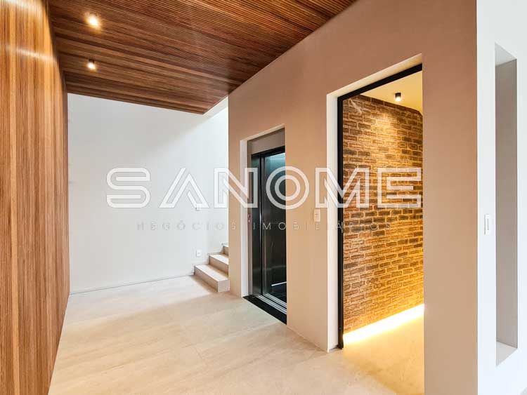 Piso térreo: Sala 3 ambientes, Lavabo, Espaço para adega, Elevador, Cozinha integrada, Área de serviço, Despensa, Varanda externa, Área gourmet, Sauna, Piscina c/ borda infinita e Banheiro de lazer externo.