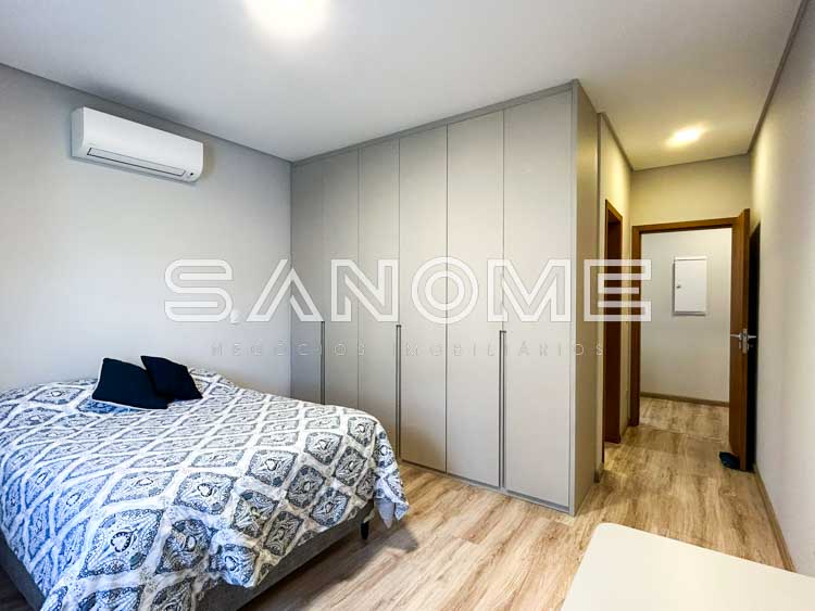 Piso superior: 4 suítes com armários embutidos (master com amplo closet e hidromassagem).